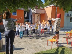 Za zaključek pa so nam otroci iz najstarejše skupine, ob spremljavi instrumentov zapeli pesmico “Če si slabe volje”.