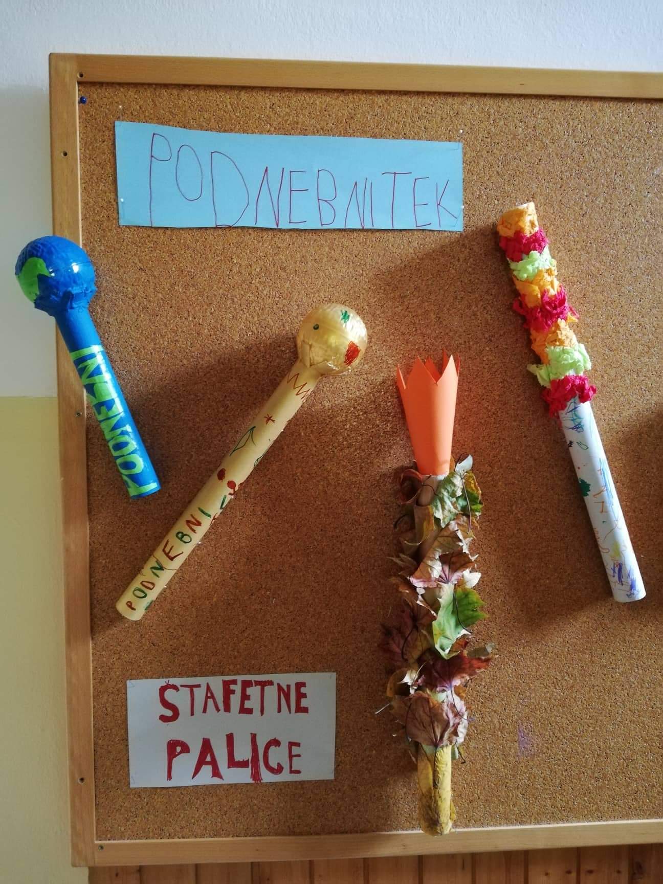 Vsaka skupina si je tako izdelala svojo štafetno palico iz odpadnih materialov, s katero je kasneje tekla in si jo podajala preko štafetnih iger in dejavnosti. Po izvedenih štafetah, pa so potekale različne dejavnosti, ki so bile povezane z vremenom, eko temami, ločevanjem odpadkov, predelavo hrane, igro z odpadnimi materiali, trajnostno mobilnostjo…