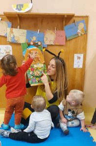- z likovnim in plesnim izražanjem ob klasični glasbi, s petjem pesmi,