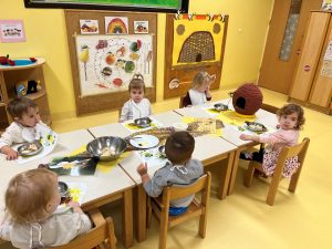 V petek, 18. novembra 2022, smo v okviru dneva slovenske hrane obeležili Tradicionalni slovenski zajtrk. Njegov namen je pomagati pri osveščanju o pomenu čebel in prednostih lokalno pridelanih živil s sloganom »Zajtrk z mlekom – super dan!«. Na ta dan smo otrokom in zaposlenim za zajtrk ponudili med, kruh, maslo, mleko in jabolka pridelano na slovenskih kmetijah.