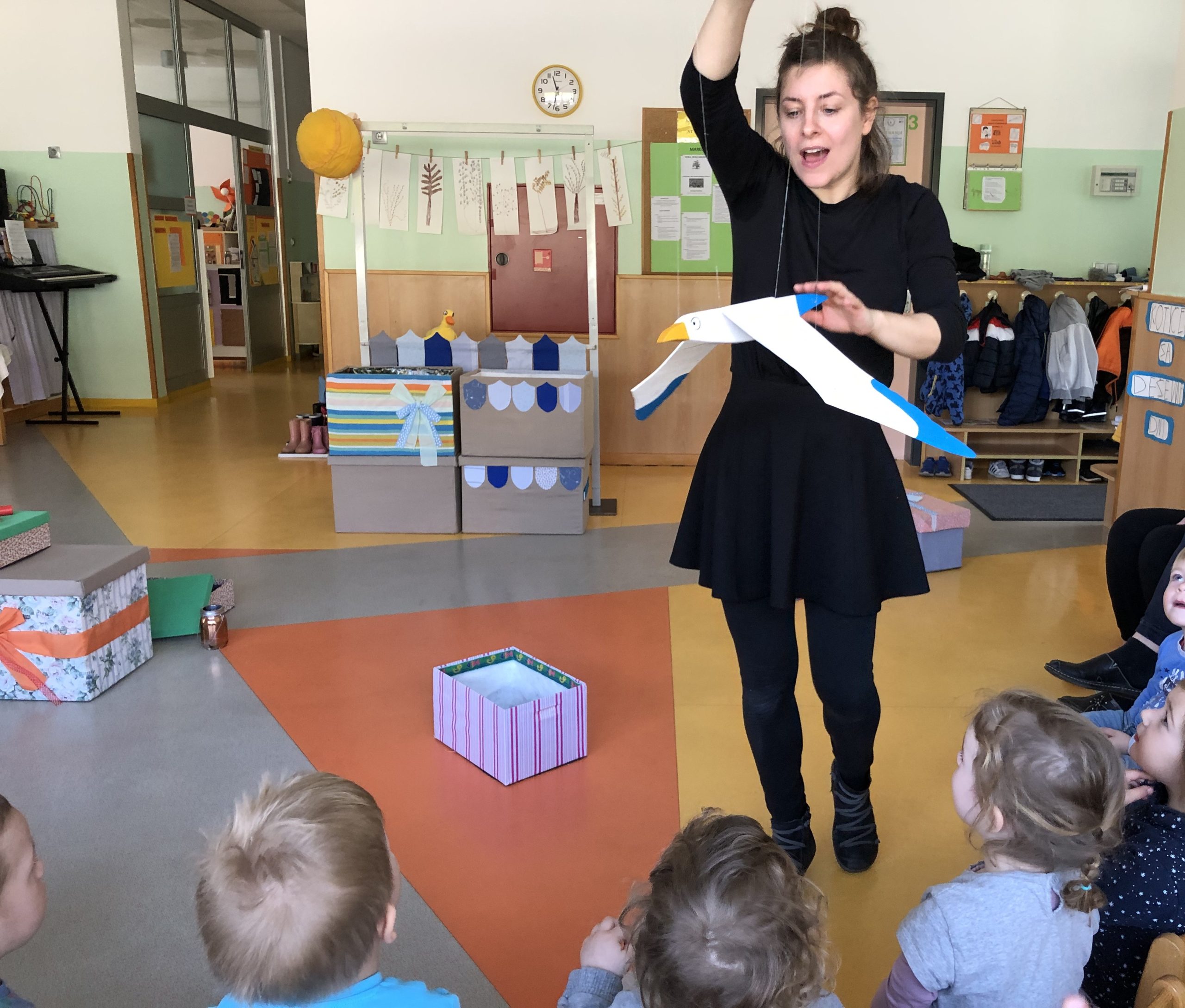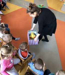 V preteklem tednu smo za otroke prvega starostnega obdobja organizirali predstavo »Račka Olivija gre v svet«. Izvedli so jo zunanji izvajalci Gledališče Zapik, v vseh enotah vrtca (Mavrica, Luna, Sonce in Hribček). Predstava je bila načrtovana v okviru programa Sklada vrtca.